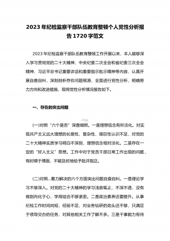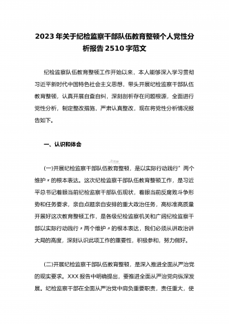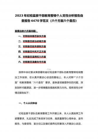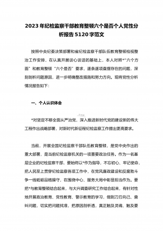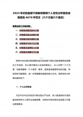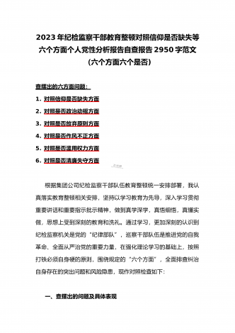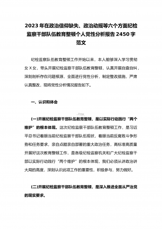 2023年在政治信仰缺失、政治动摇、放弃原则、作风不正、滥用权力、清廉失守六个方面纪检监察干部队伍教育整顿个人党性分析报告2450字范文