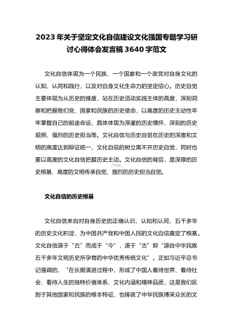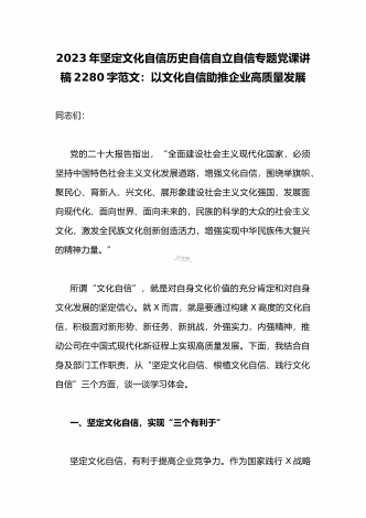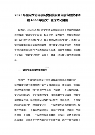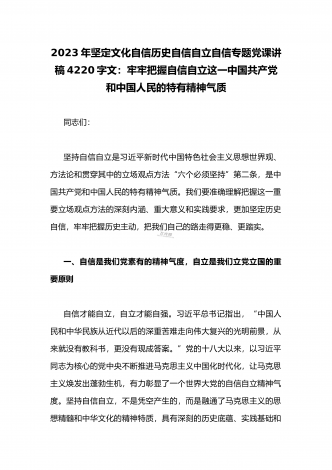 2023年坚定文化自信历史自信自立自信专题党课讲稿4220字文:牢牢把握自信自立这一中国共产党和中国人民的特有精神气质