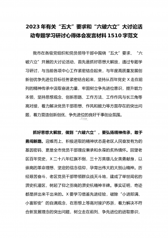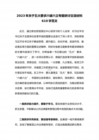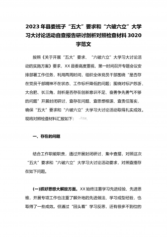 2023年县委班子“五大”要求和“六破六立”大学习大讨论活动自查报告研讨剖析对照检查材料3020字范文
