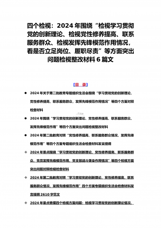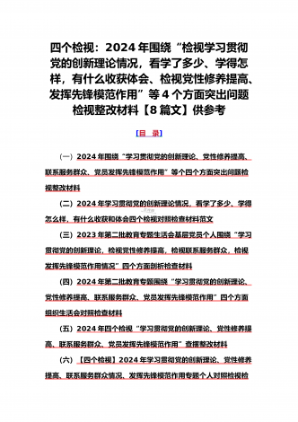 四个检视:2024年围绕“检视学习贯彻党的创新理论情况,看学了多少、学得怎样,有什么收获体会、检视党性修养提高、发挥先锋模范作用”等4个方面突出问题检视整改材料【8篇文】供参考