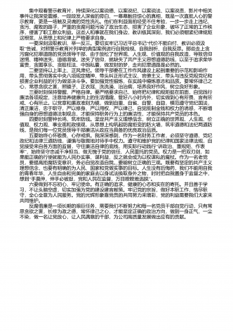 集中观看警示教育片,持续深化以案说德、以案说纪、以案说法、以案说责,影片中相关事件让我深受震撼,一段段发人深省的旁白、一幕幕触目惊心的真相,既是一次直抵人心的警示教育,更是一场触及灵魂的党性洗礼。他们在利益面前经受不住考验,一步一步走上违纪、贪污、腐败的路子,严重的贪腐问题污染了政治生态,损害了企业形象,破坏了正常的工作秩序,侵害了职工群众利益。这些人和事就在我们身边,教训极其深刻,我们必须绷紧纪律规矩这根弦,从思想上和纪律上严格要求自身。 “一要深刻汲取教训、举一反三。要切实牢记习近平总...