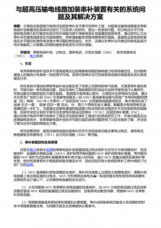 与超高压输电线路加装串补装置有关的系统问题及其解决方案摘要:文章结合我国南方电网河池固定串补及平果可控串补工程,对超高压输电线路装设串联电容补偿装置后的系统状况进行了比较深入的研究,指出一些系统问题,如过电压水平升高、潜供电流增大和可能发生的次同步谐振均源于串联电容补偿装置的固有特性,通过研究认为当串补所在输电线路发生内部故障时,采取强制触发旁路间隙等保护措施,是避免出现系统恢复电压水平超标和潜供电流增大等问题的有效途径。此外,还建议在串补站内装设抑制或监视次同步谐振的二次装置以抑制和避免系统发...
