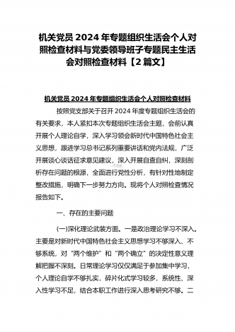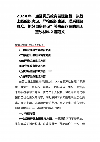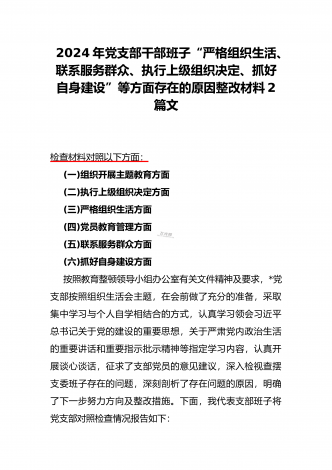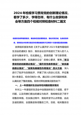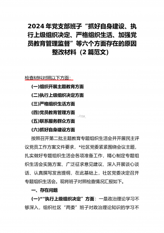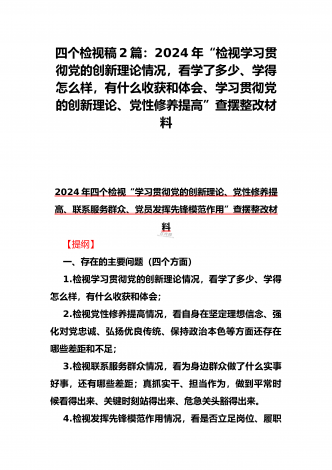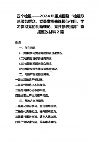 2024年围绕“检视党性修养提高、看学了多少、学得怎样,有什么收获和体会、联系服务群众、党支部战斗堡垒作用情况”等四个方面突出问题检视整改材料【2篇文】