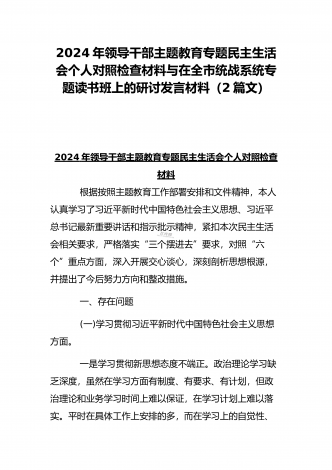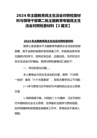 2024年围绕“检视党性修养提高、看学了多少、学得怎样,有什么收获和体会、联系服务群众、党支部战斗堡垒作用情况”等四个方面突出问题检视整改材料【2篇文】2024年重点围绕“学习贯彻党的创新理论、党性修养提高、联系服务群众、党员发挥先锋模范作用、党支部战斗堡垒作用情况”等四个检视方面突出问题对照检视检查材料按照《关于第二批主题教育单位基层党组织召开专题组织生活会和开展民主评议党员的通知》精神要求,我深入学习了习近平新时代中国特色社会主义思想,认真研读了习近平总书记关于党的建设的重要思想,学习习近平...