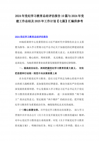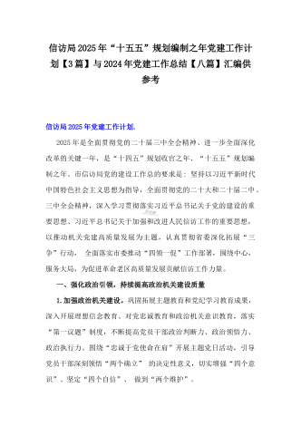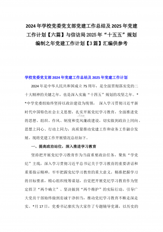 2024年学校党委党支部党建工作总结及2025年党建工作计划【六篇】与信访局2025年“十五五”规划编制之年党建工作计划【3篇】汇编供参考