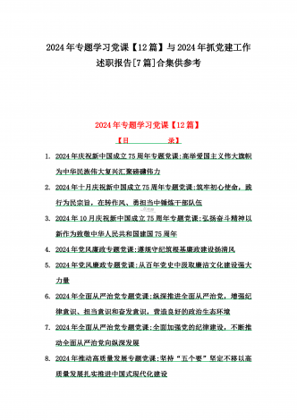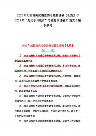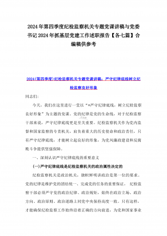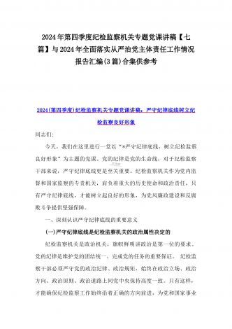 2024年第四季度纪检监察机关专题党课讲稿【七篇】与2024年全面落实从严治党主体责任工作情况报告汇编(3篇)合集供参考