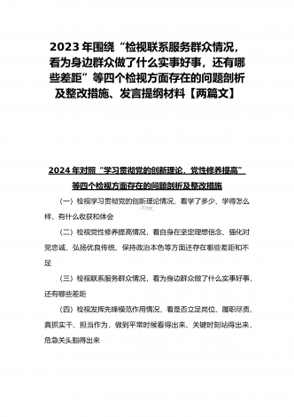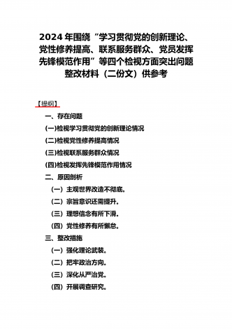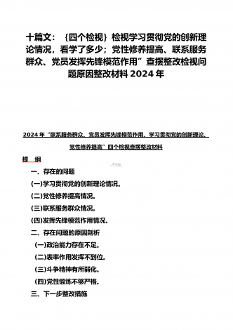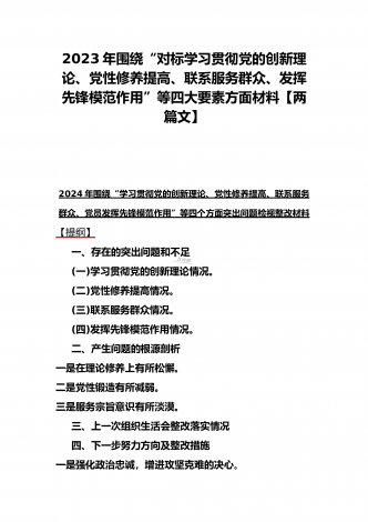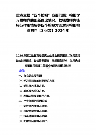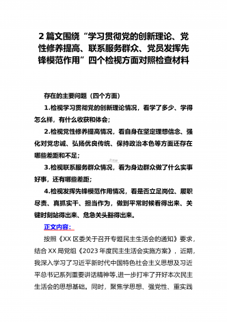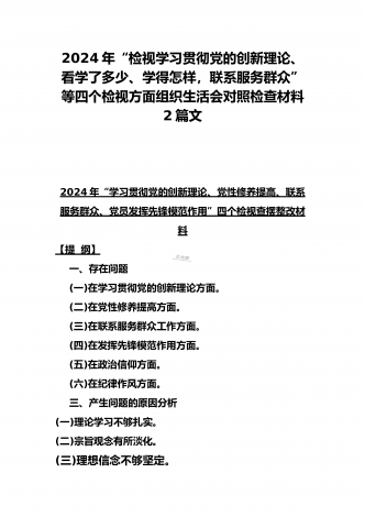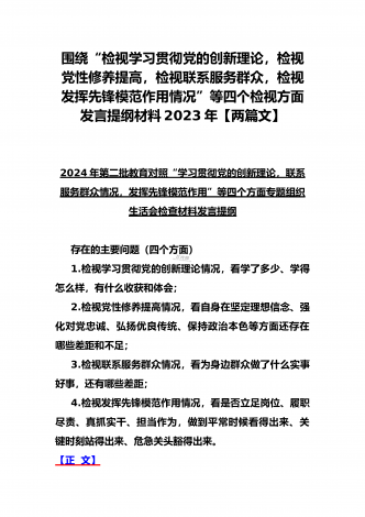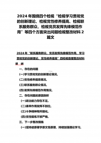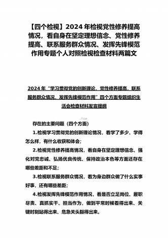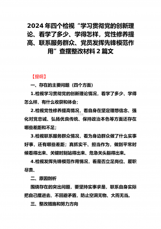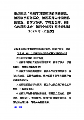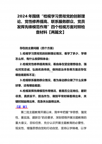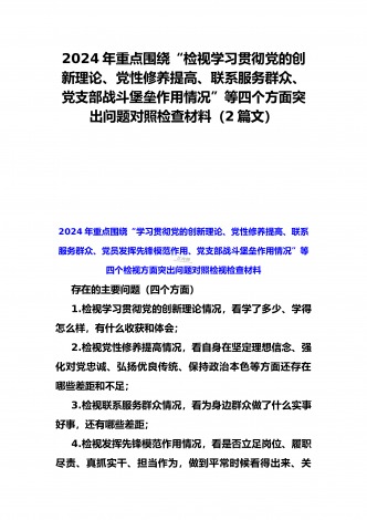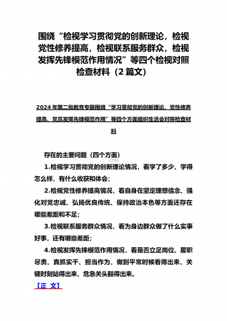 重点围绕“检视学习贯彻党的创新理论,检视联系服务群众,检视发挥先锋模范作用情况、看学了多少、学得怎么样,有什么收获和体会”等四个检视对照检查材料2024年(2篇文)