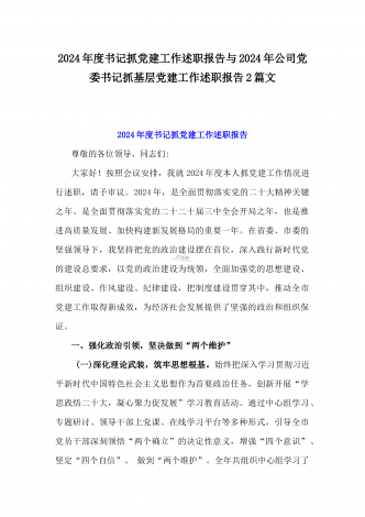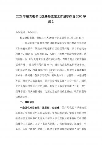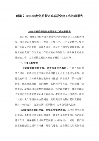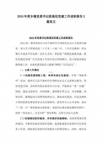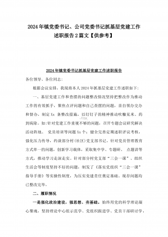 2篇文:2024年镇党委书记抓基层党建工作述职报告与2024年党支部书记抓基层党建工作述职报告