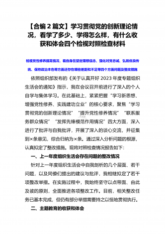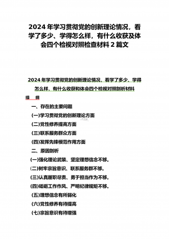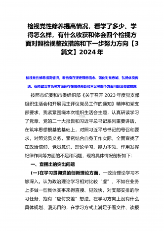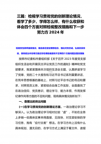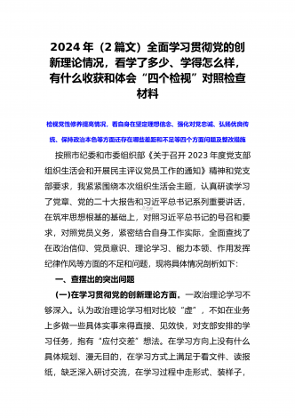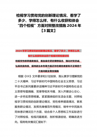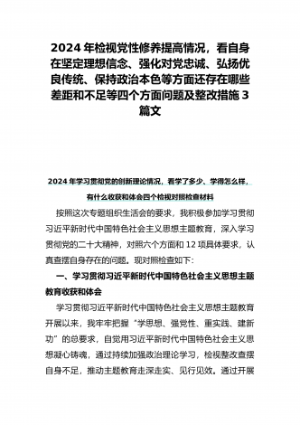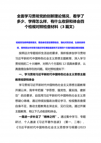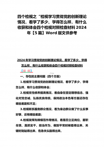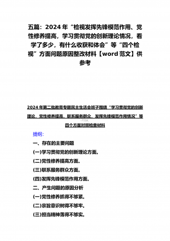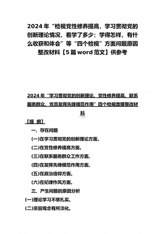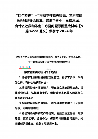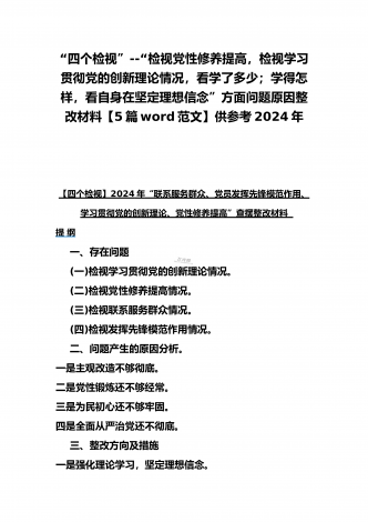 “四个检视”--“检视党性修养提高,检视学习贯彻党的创新理论情况,看学了多少;学得怎样,看自身在坚定理想信念”方面问题原因整改材料【5篇word范文】供参考2024年