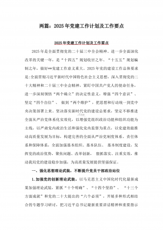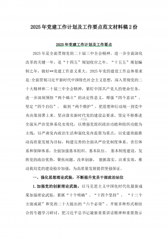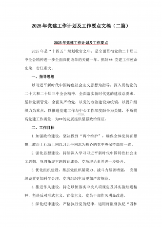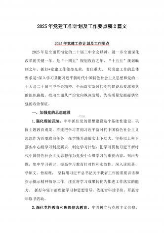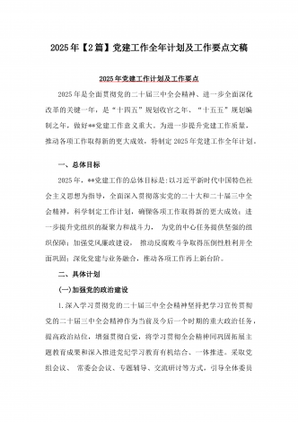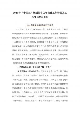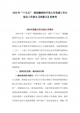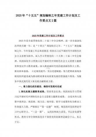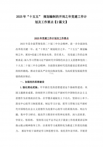 2025年“十五五” 规划编制的开局之年党建工作计划及工作要点【两篇文】供参考