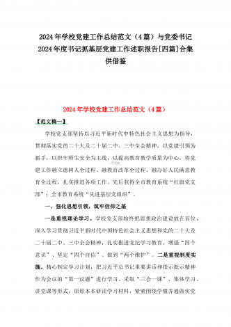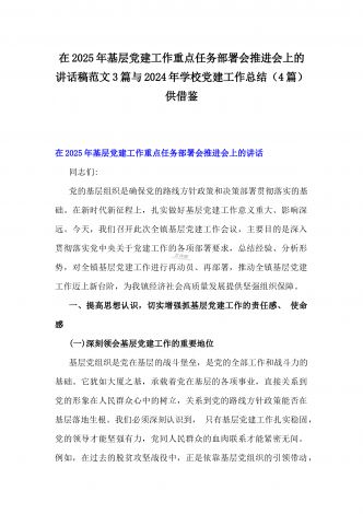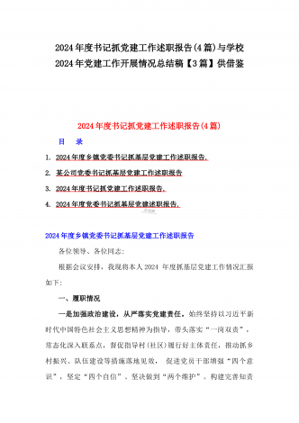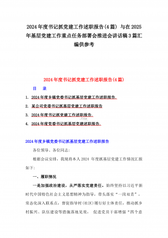 2024年度书记抓党建工作述职报告(4篇) 与在2025年基层党建工作重点任务部署会推进会讲话稿3篇汇编供参考
