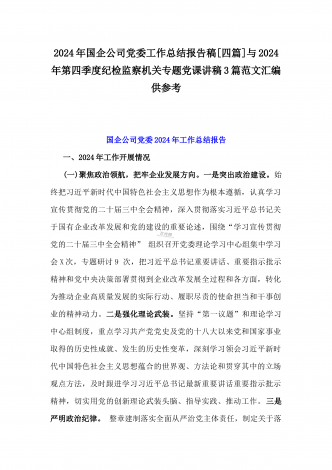 2024年度书记抓党建工作述职报告(4篇)与在2025年基层党建工作重点任务部署会推进会讲话稿3篇汇编供参考2024年度书记抓党建工作述职报告(4篇)目录1.2024年度乡镇党委书记抓基层党建工作述职报告.2.某公司党委书记抓基层党建工作述职报告3.2024年度书记抓党建工作述职报告.4.2024年度党委书记抓基层党建述职报告.2024年度乡镇党委书记抓基层党建工作述职报告各位领导、各位同志:根据会议安排,我现将本人2024年度抓基层党建工作情况汇报如下:一、履职情况一是加强政治建设,从严落实党...