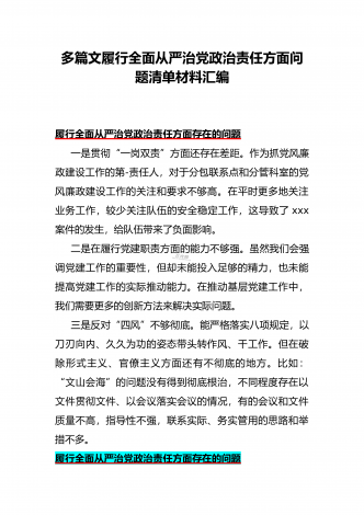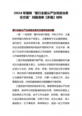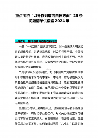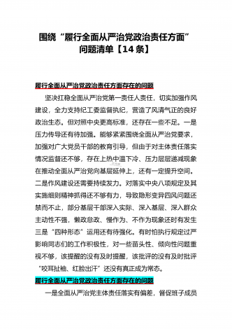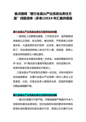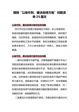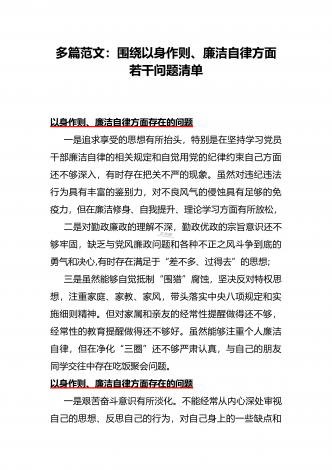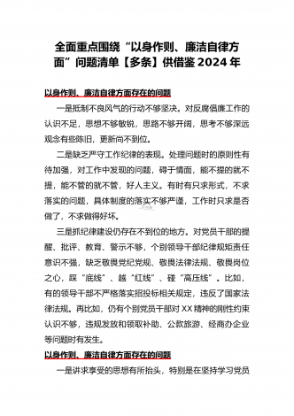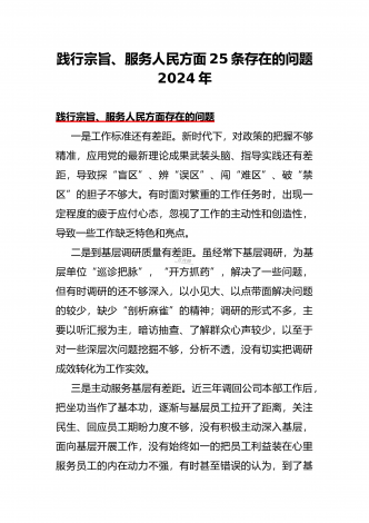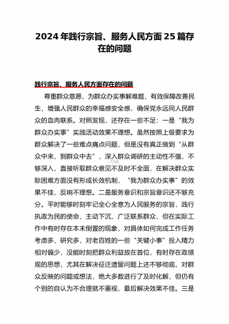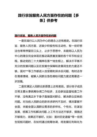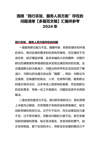 围绕“践行宗旨、服务人民方面”存在的问题清单【多篇范文稿】汇编供参考2024年