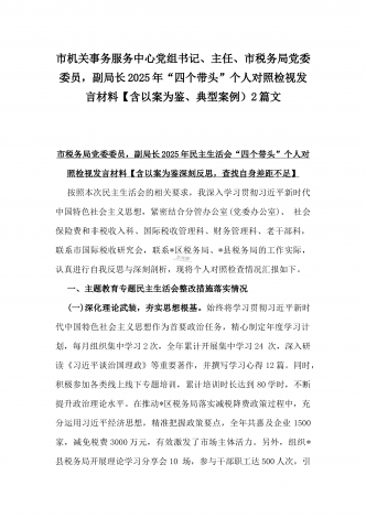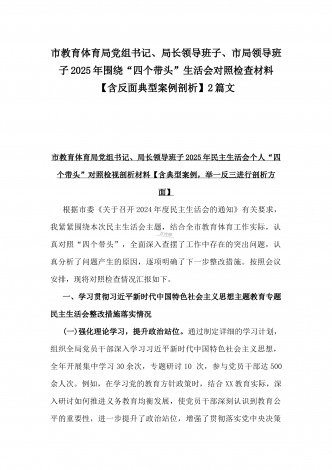 市教育体育局党组书记、局长领导班子2025年“四个带头”对照检视剖析材料【含典型案例】与市红十字会党支部书记组织生活会“四个带头”个人对照检查发言材料【含意识形态】2篇文