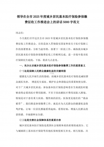2025年度副市长在全市城乡居民基本医疗保险参保缴费征收工作推进会上讲话稿(2篇)供参考