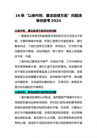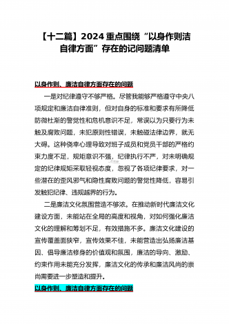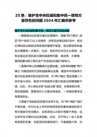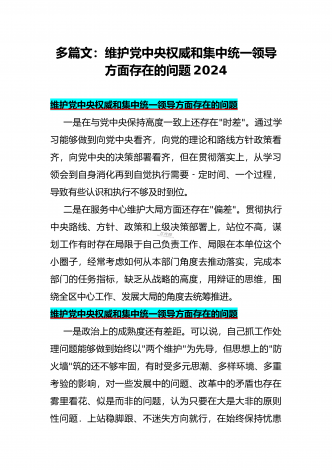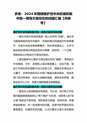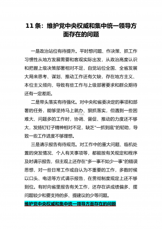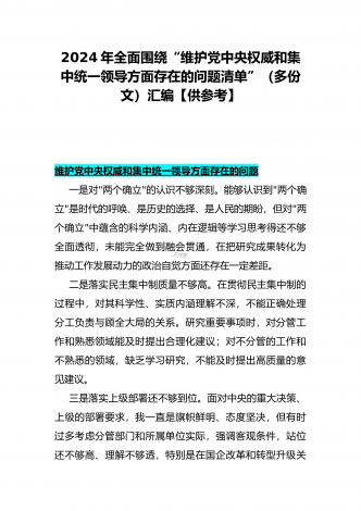 2024年全面围绕“维护党中央权威和集中统一领导方面存在的问题清单”(多份文)汇编【供参考】