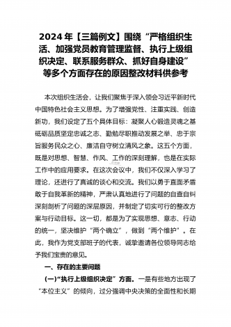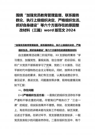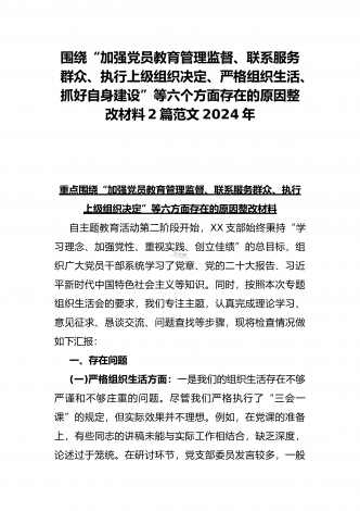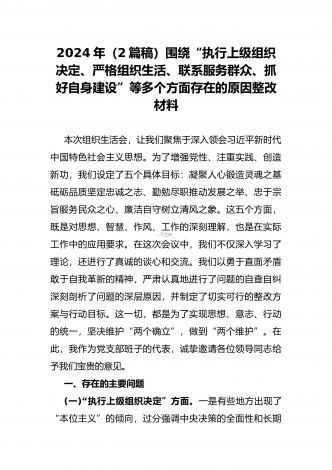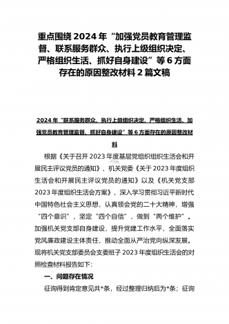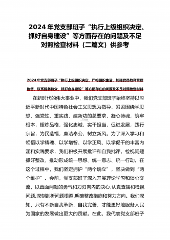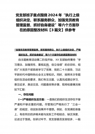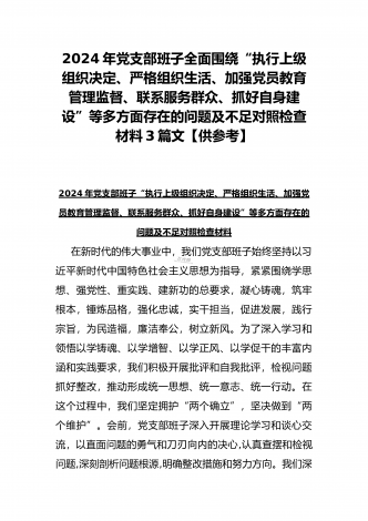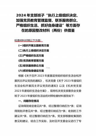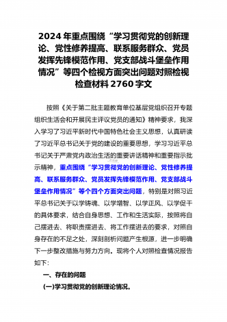 2024年重点围绕“学习贯彻党的创新理论、党性修养提高、联系服务群众、党员发挥先锋模范作用、党支部战斗堡垒作用情况”等四个检视方面突出问题对照检视检查材料2760字文