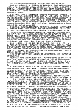 “”南辕北辙的故事告诉我们方向是比速度重要的追求,方向对了,奋斗才有意义。当前,世界百年未有之大变局加速演进,不确定、难预料因素增多,改革发展面临不少躲不开、绕不过的深层次矛盾,各种风险挑战、困难问题比以往更加严峻复杂。中国共产党二十届三中全会的胜利召开,是在新的历史发展阶段,面对世界日益复杂的形势变化和国际国内双重重大考验的关键节点,召开的一次具有非凡引领和深刻历史意义的大会,会议审议通过了《中共中央关于进一步全面深化改革、推进中国式现代化的决定》(以下简称《决定》)。充分体现了以习近平同...