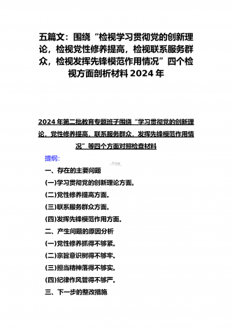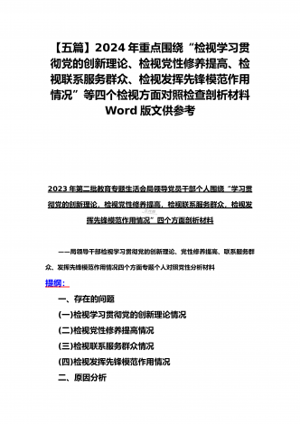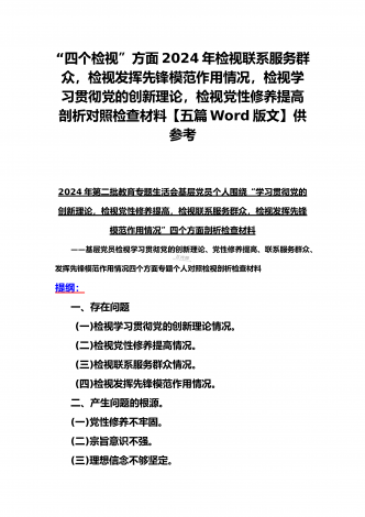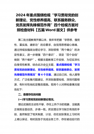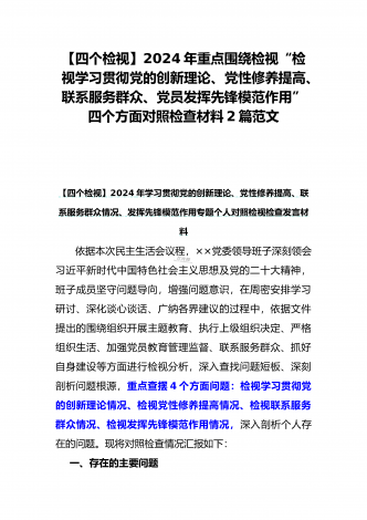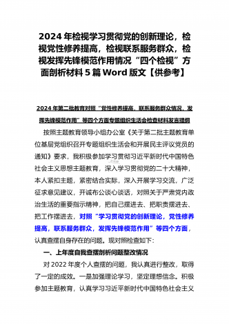 四个检视:2024年基层党员个人围绕“检视学习贯彻党的创新理论,检视党性修养提高,检视联系服务群众,检视发挥先锋模范作用情况”四个方面剖析检查材料5份【Word版】供参考