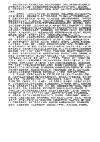 “市委社会工作部认真贯彻落实党的二十届三中全会精神,深刻认识和把握继续完善和发”展中国特色社会主义制度,推进国家治理体系和治理能力现代化这个总目标,紧密结合实际,积极探索新时代社会治理的新路径、新载体、新方式,为全市经济社会高质量发展提供坚实保障。 一、勠力同心,扛牢社会工作新使命。坚守政治站位。深刻认识社会工作部门在改革中应运而生的重要意义,切实加强党对社会工作的全面领导,深入谋划社会工作领域贯彻全会部署、推进改革深化的思路机制、载体举措,树立抢抓机遇、统筹治理的战略思想,以改革的思维理...