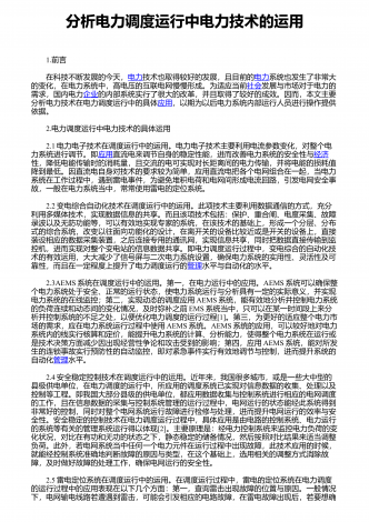 分析电力调度运行中电力技术的运用 1.前言 在科技不断发展的今天,电力技术也取得较好的发展,且目前的电力系统也发生了非常大的变化,在电力系统中,高电压的互联电网慢慢形成。为适应当前社会发展与市场对于电力的需求,国内电力企业的内部系统实行了很大的改革,并且取得了较好的成效。因而,本文主要分析电力技术在电力调度运行中的具体应用,以期为以后电力系统内部运行人员进行操作提供依据。 2.电力调度运行中电力技术的具体运用 2.1电力电子技术在调度运行中的运用。电力电子技术主要利用电流参数变化,对整个...