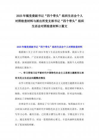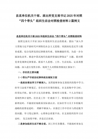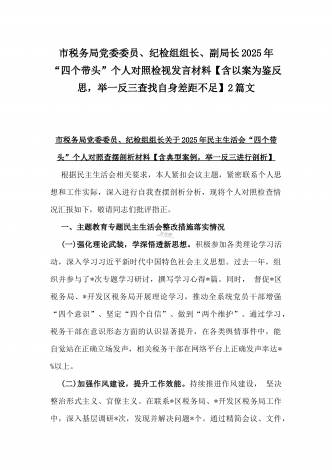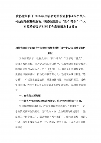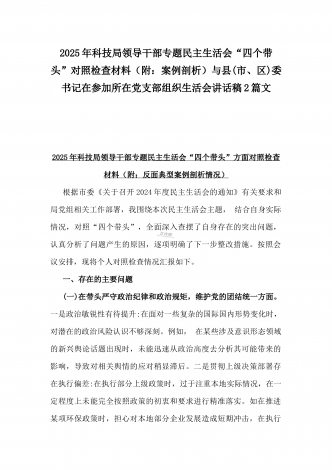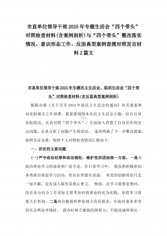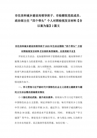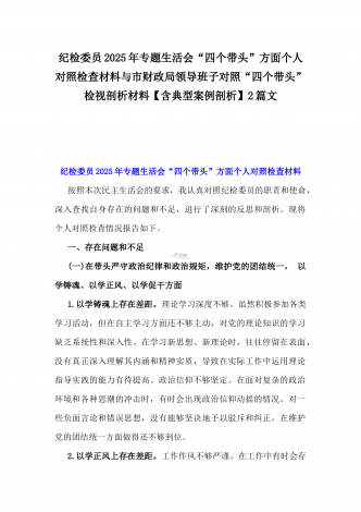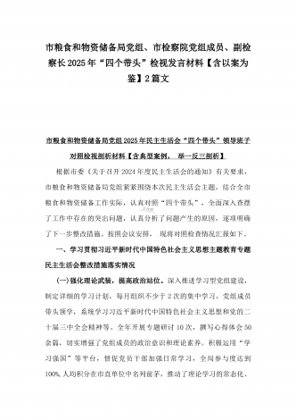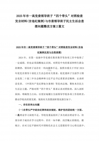 市检察院党组领导班子2025年生活会对照“四个带头”方面检视发言材料【含以案为鉴反思】与职业学校党委书记“四个带头”对照检视发言材料【含案例剖析】2篇文