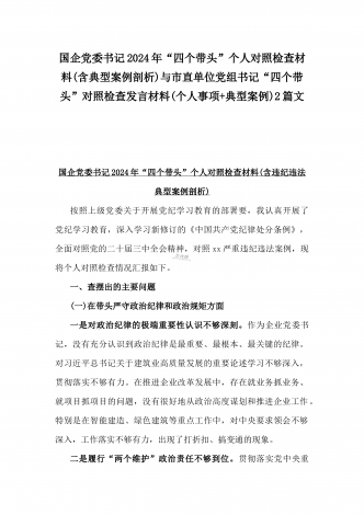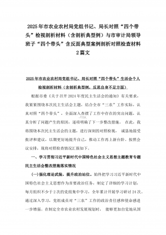 市检察院党组领导班子2025年生活会对照“四个带头”方面检视发言材料【含以案为鉴反思】与职业学校党委书记“四个带头”对照检视发言材料【含案例剖析】2篇文市检察院党组领导班子2025年生活会对照“四个带头”方面检视发言材料【含以案为鉴反思】根据市委《关于召开2024年度民主生活会的通知》有关要求,检察院党组紧紧围绕本次民主生活会主题,结合检察工作职能,认真对照“四个带头”,全面深入查摆了工作中存在的突出问题,认真分析了问题产生的原因,逐项明确了下一步整改措施。按照会议安排,现将对照检查情况汇报如下...