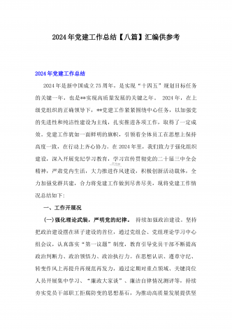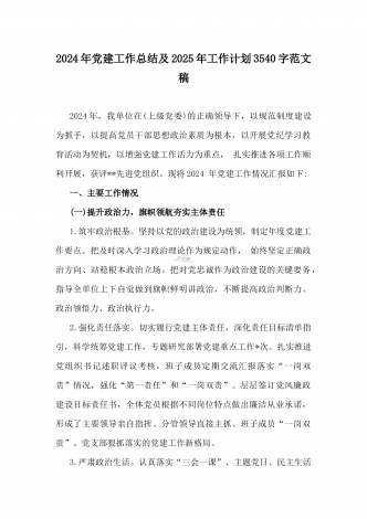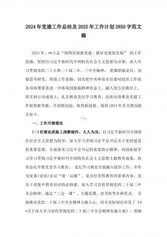 2024年党建工作总结及2025年工作计划【七篇】汇编供参考