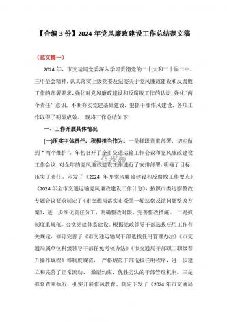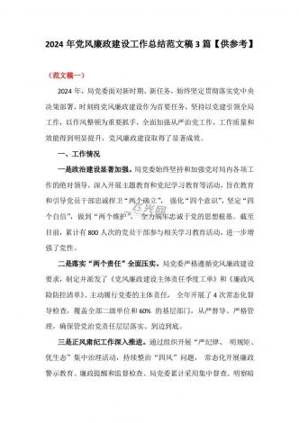 【合编3份】2024年党风廉政建设工作总结范文稿