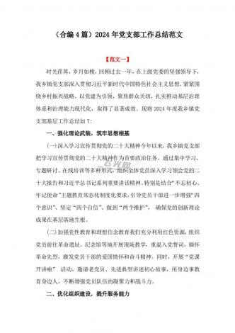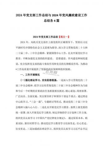 (合编4篇)2024年党支部工作总结与四篇党风廉政建设工作总结文稿