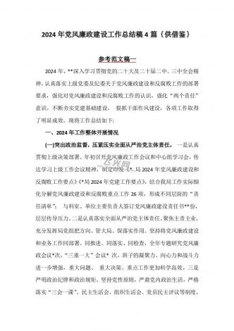 2024年党风廉政建设工作总结稿4篇{供借鉴}