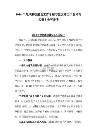 多篇:2024年党风廉政建设工作总结稿和党支部工作总结文稿