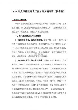 2024年党风廉政建设工作总结文稿两篇(供借鉴)