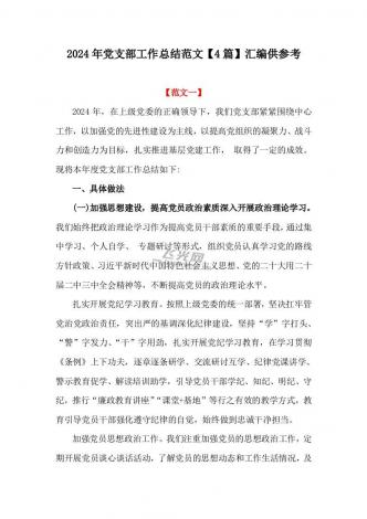 (合编4篇)2024年党支部工作总结范文