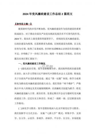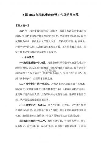 2024年党风廉政建设工作总结2篇范文