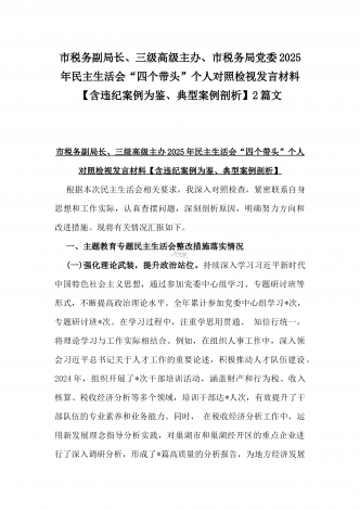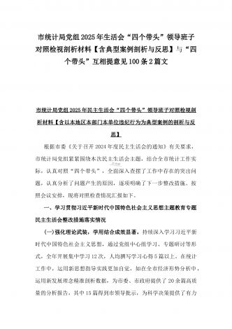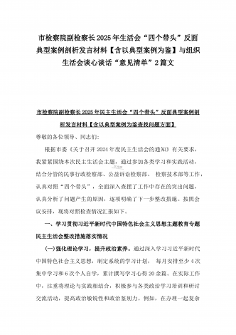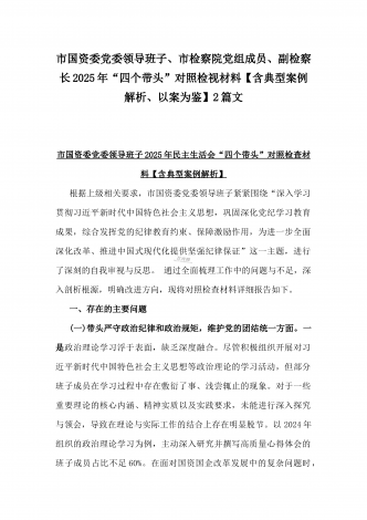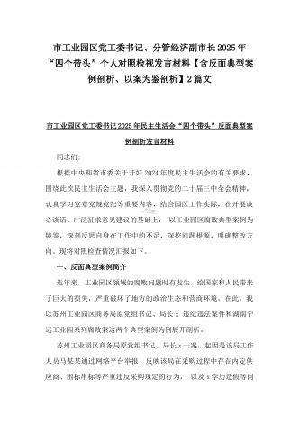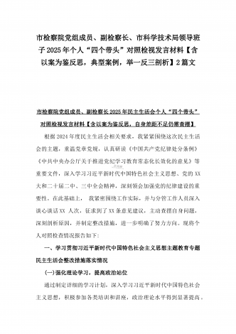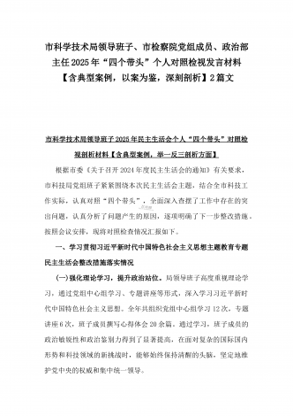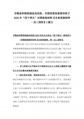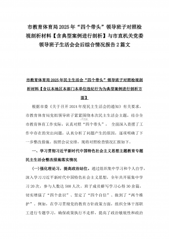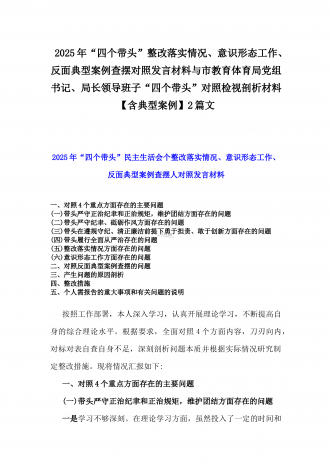 2025年“四个带头”整改落实情况、意识形态工作、反面典型案例查摆对照发言材料与市教育体育局党组书记、局长领导班子“四个带头”对照检视剖析材料【含典型案例】2篇文