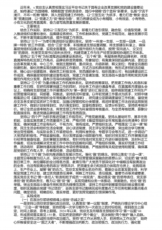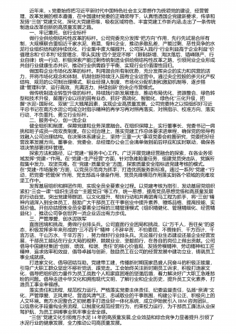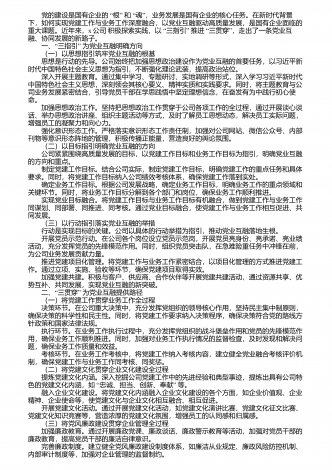 “” “”党的建设是国有企业的根和魂,业务发展是国有企业的核心任务。在新时代背景下,如何实现党建工作与业务工作深度融合,以党业互融驱动高质量发展,是国有企业面临的重大课题。近年来,x “” “”公司积极探索实践,以三指引推进三贯穿,走出了一条党业互融、协同发展的新路子。 “” 一、三指引为党业互融明确方向 (一)以思想指引筑牢党业互融的根基 思想是行动的先导。公司始终把加强思想政治建设作为党业互融的首要任务,以习近平新时代中国特色社会主义思想为指引,不断强化理论武装,提高政治站...
