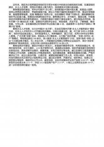近年来,我区着眼为事业发展选人、凭实干实绩用人、靠制度机制激励人,通过统筹谋划、搭建舞台、严管厚爱等举措,着力锻造一支政治过硬、本领高强、敢于担当、务实创新的复合型年轻干部队伍,促进年轻干部放开手脚、大显身手。 “”“”一、一盘棋考量,下好先手棋,让年轻干部成长更有方向。制定《区年轻干部队伍建设规划(2024-2026“)》,大力实施年轻干部培养储备选拔3111”工程,即利用三年时间,培训锻炼一批各领域优秀年轻干部,动态储备一批各类别优秀年轻干部,提拔一批不同层级年轻领“”“”导干部,推动...