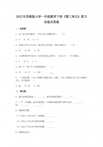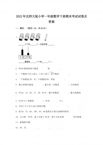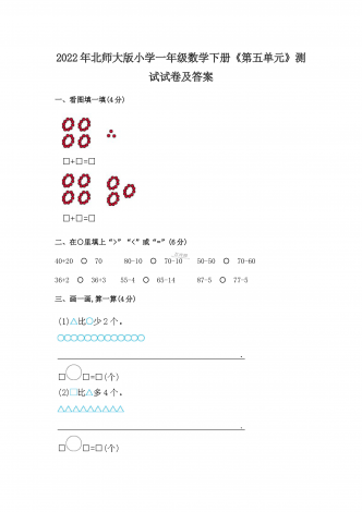 2022年北师大版小学一年级数学下册《第四单元》测试试卷及答案