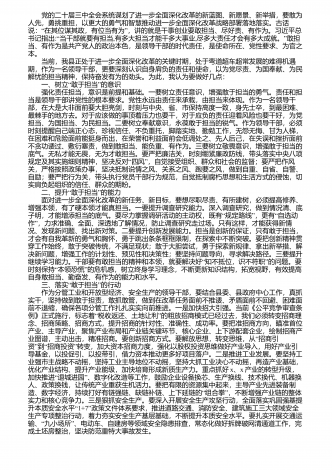 党的二十届三中全会系统谋划了进一步全面深化改革的新蓝图、新愿景、新举措,要敢为人先,勇挑重担,以更大的勇气和智慧推动进一步全面深化改革战略部署落地落实。古话“”说:在其位谋其政,有位当有为,讲的就是干事创业要敢担当、尽好责、有作为。习近平总书记指出:“当干部就要有担当,有多大担当才能干多大事业,”尽多大责任才会有多大成就。敢担当、有作为是共产党人的政治本色,是领导干部的时代责任,是使命所在、党性要求、为官之本。 当前,我县正处于进一步全面深化改革的关键时期,处于弯道超车超常发展的难得机遇期...