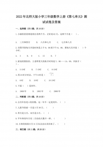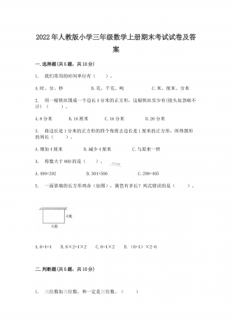 2022年人教版三年级数学上册期末《图形与几何》复习题及答案