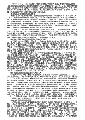 1979年7月29日,邓小平在接见中共海军委员会常委扩大会议全体同志时发表了题为《思想路线政治路线的实现要靠组织路线来保证》的重要讲话,充分揭示了组织路线的极端重要性。重温这篇讲话,对我们今天全面深入理解并贯彻落实新时代党的组织路线,深化干部人事制度改革,鲜明树立选人用人正确导向,大力选拔政治过硬、敢于担当、锐意改革、实绩突出、清正廉洁的干部,具有深远的理论和现实意义。 思想路线是确定政治路线的基础 “毛泽东指出:掌握思想教育,是团结全党进行伟大政治斗争的中心环节。如果这个任务”不解...