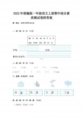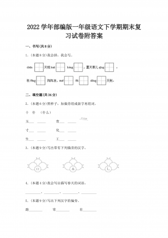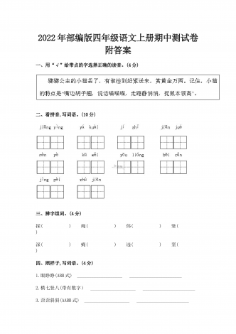 2022-2023学年人教版小学四年级英语下册期末质量预测卷及答案