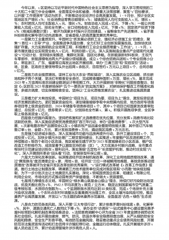 今年以来,x区坚持以习近平新时代中国特色社会主义思想为指导,深入学习贯彻党的二“十大和二十届三中全会精神,全面落实中央和省委、市委重大决策部署,聚焦x”目标要求,“”以开展工作提质年活动为抓手,不断推动全区经济社会高质量发展。1-9月份,预计全区实现地区生产增长x%;社会消费品零售总额增长x%;城镇居民人均可支配收入x元、增长x%;农村居民人均可支配收入x元、增长x%。财政总收入完成x亿元,下降x%;一般公共预算收入完成x亿元,排名全市第x;全口径税收收入完成x亿元,下降x%;固定资产投资下...