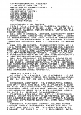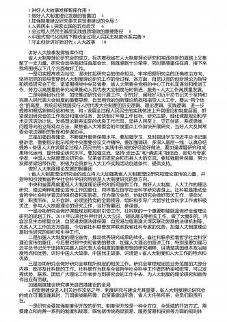 1.讲好人大故事发挥智库作用3 2.做好人大制度理论发展的智囊团4 3.加强制度建设研究事关自贸港建设的全局5 4.人民民主x探索实践的五点启示6 5.全过程人民民主基层实践提质增效的重要路径8 6.中国式现代化视域下推动全过程人民民主制度体系完善9 7.守正创新讲好新时代x人大故事10 讲好人大故事发挥智库作用 省人大制度理论研究会的成立,标志着我省在人大制度理论研究和实践创新的道路上又集聚了一支力量。研究会选举我担任首届会长,我既感到十分荣幸,同时更感重任在肩,接下来...