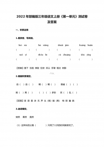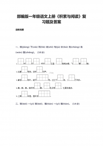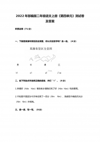 2022年部编版四年级语文上册《第二单元 课内阅读理解》训练题及答案