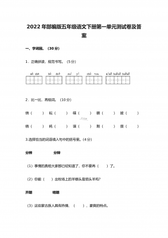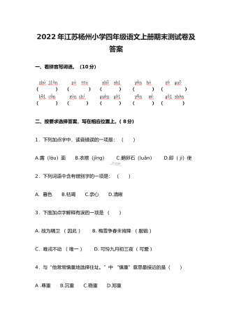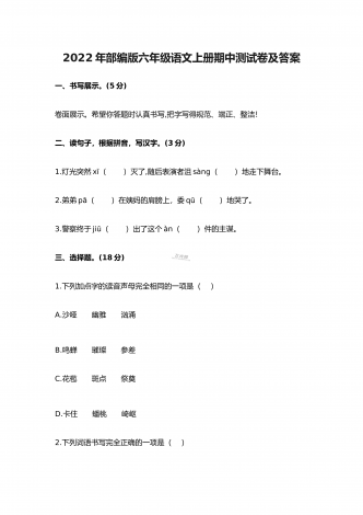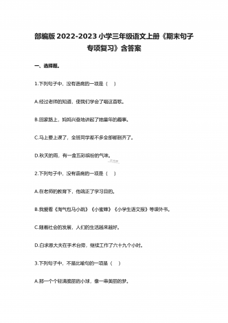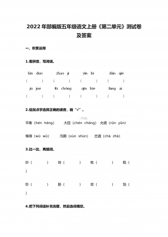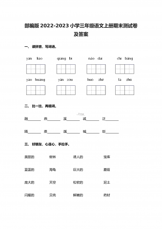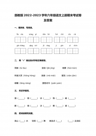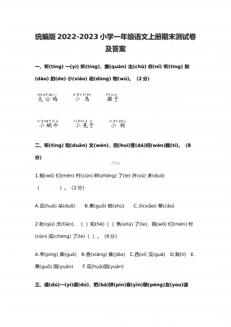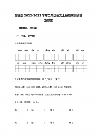 2022-2023部编版小学二年级语文上册期末试卷(附答案)