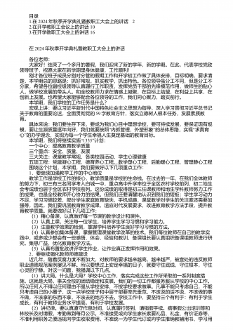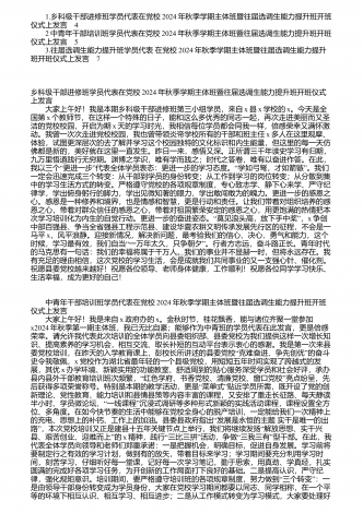 1.乡科级干部进修班学员代表在党校2024年秋季学期主体班暨往届选调生能力提升班开班仪式上发言4 2中青年干部培训班学员代表在党校2024年秋季学期主体班暨往届选调生能力提升班开班仪式上发言5 3.往届选调生能力提升班学员代表 在党校2024年秋季学期主体班暨往届选调生能力提升班开班仪式上发言7 乡科级干部进修班学员代表在党校2024年秋季学期主体班暨往届选调生能力提升班开班仪式上发言 大家上午好!我是本期乡科级干部进修班第三小组学员,来自x县x学校的x。今天是全国第x个教师...