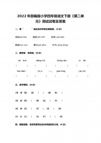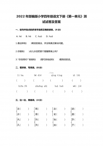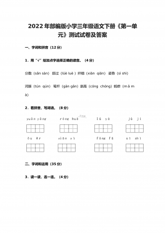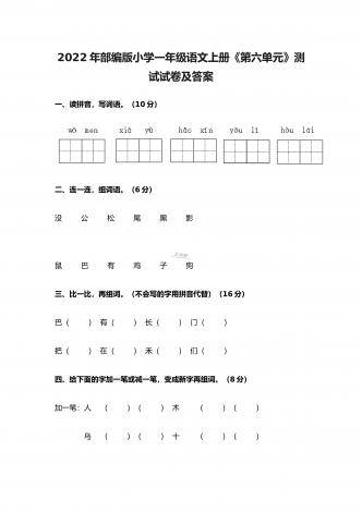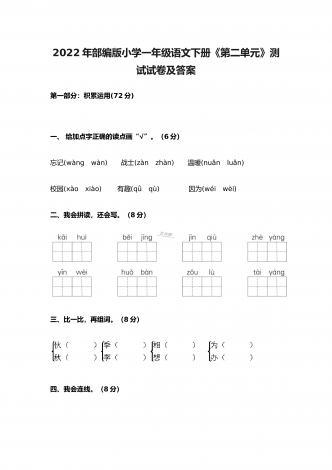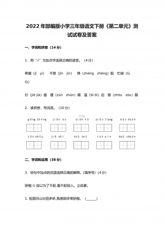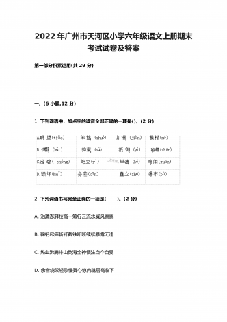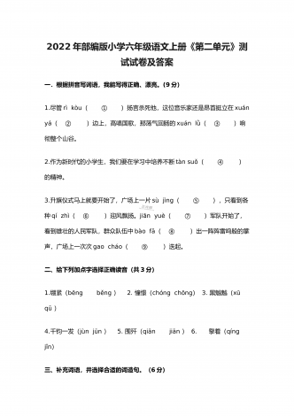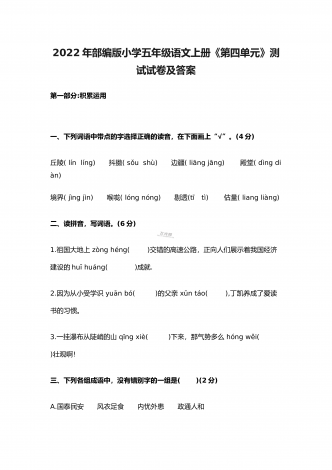 2022年部编版小学五年级语文上册期中考试试卷及答案一、根据拼音写词语(10分)。二、选择填空(8分)。(一)选择正确的词语填空(2分)A.抢救 B.拯救 C.挽救 D.救助1.老爷爷得了重病,医生们正在全力( )。2.语文老师每月拿出一百元钱,( )一名失学儿童。3.老麻雀不顾自己的危险,一心只想( )自己的幼儿。4.海力布为了( )乡亲们的生命,最后牺牲了自己。(二)选择正确的读音填空(4分)1.垂蔓(A.màn B.wàn)2.挨近(A.āi B.ái)3.咂嘴(...