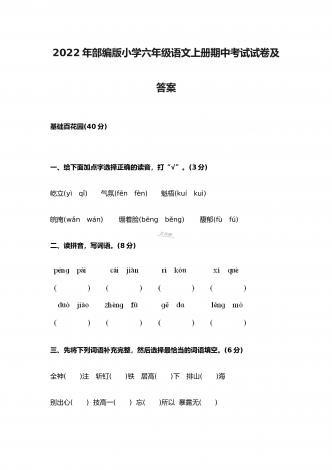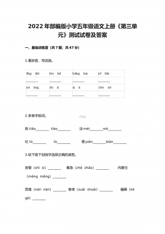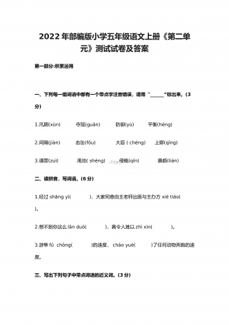 2022年部编版小学五年级语文上册期中考试试卷及答案